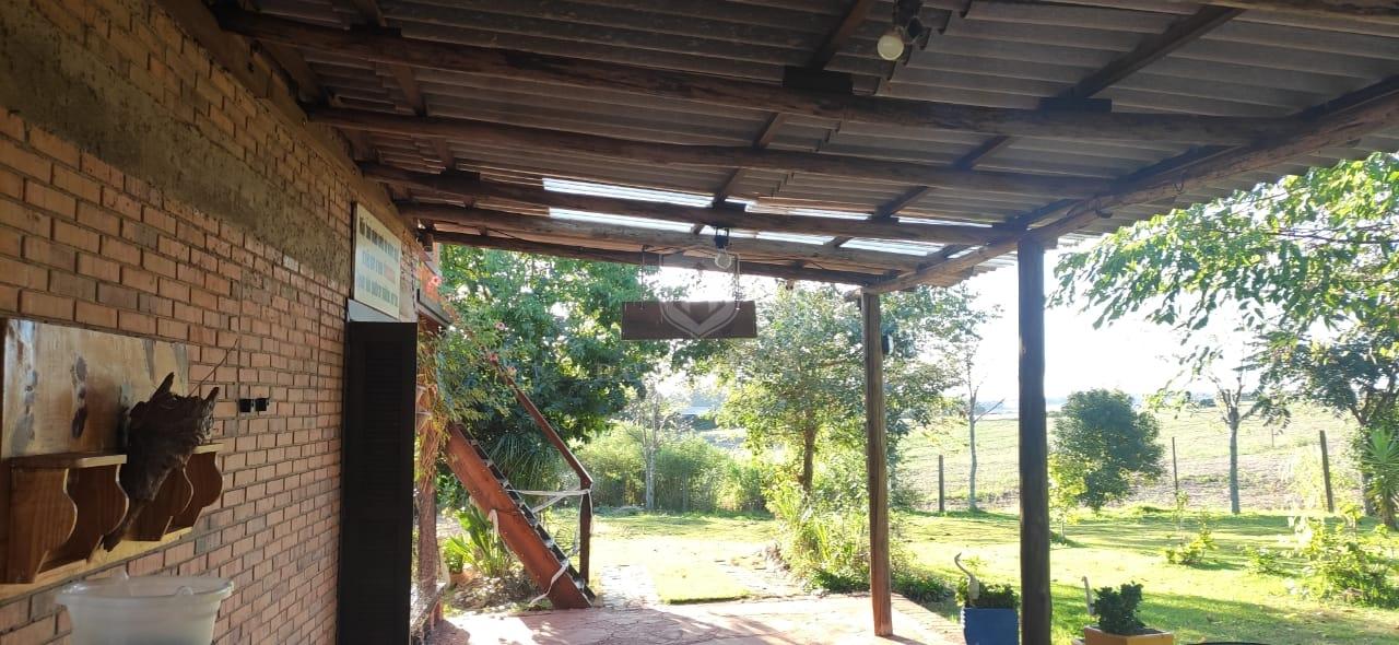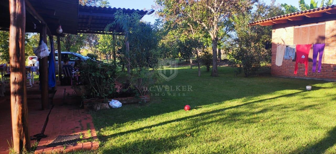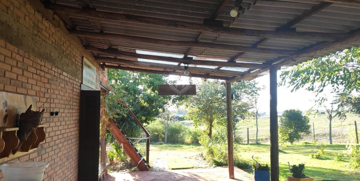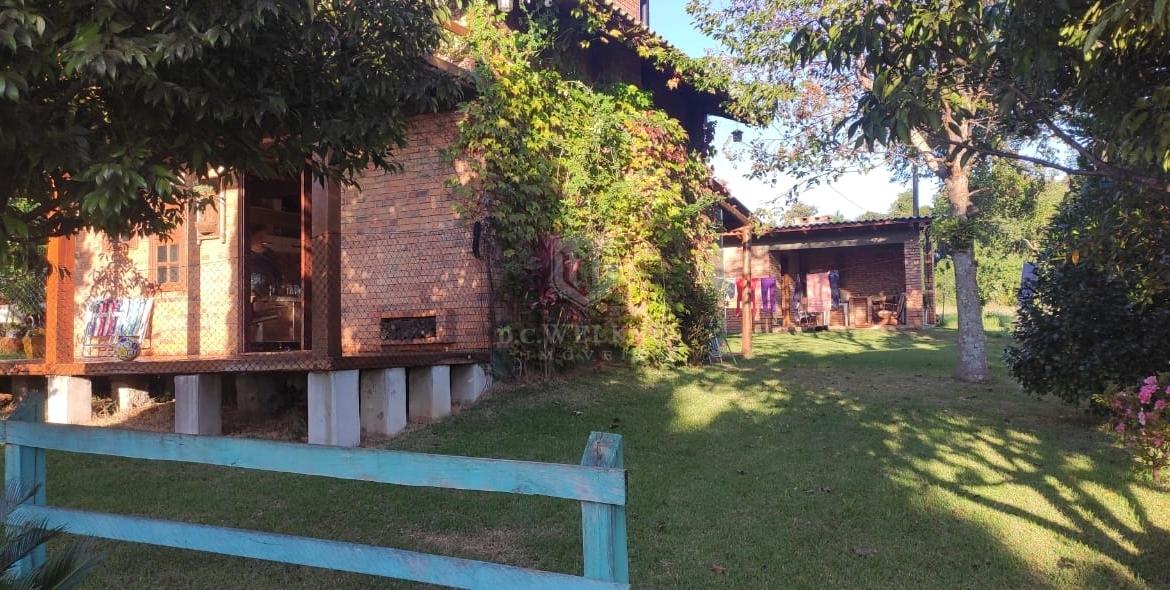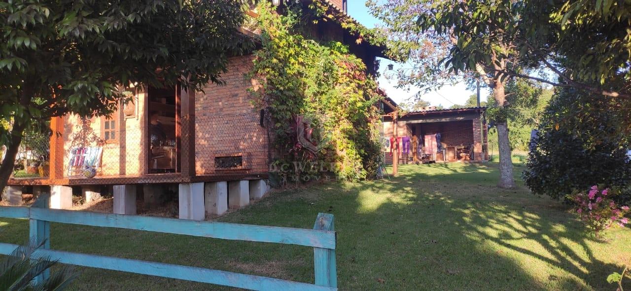 Quiosque com banho, lavanderia, banheiro e churrasqueira com 36 m², com galpão de madeira e cancha de bochas.