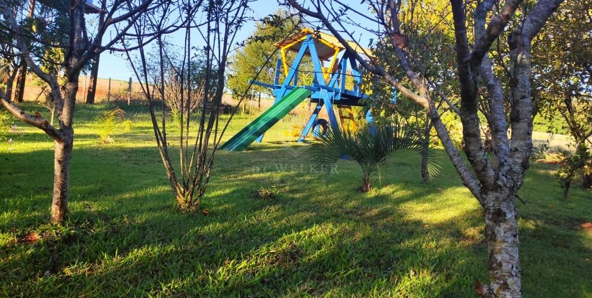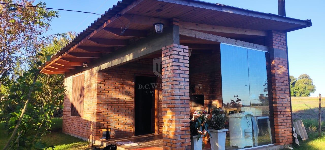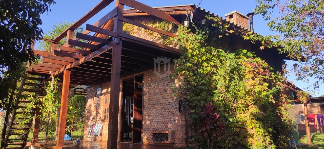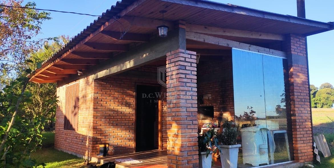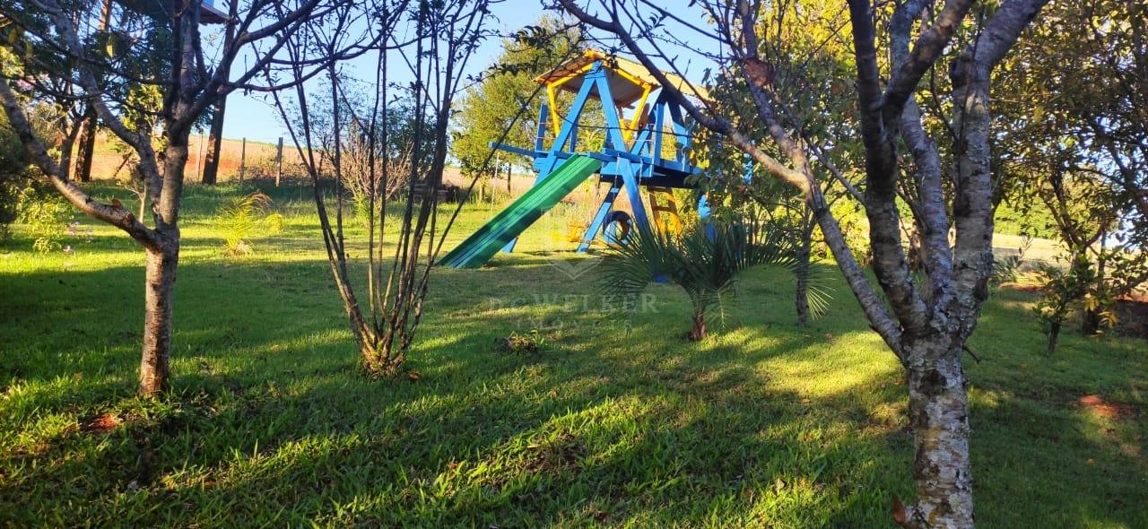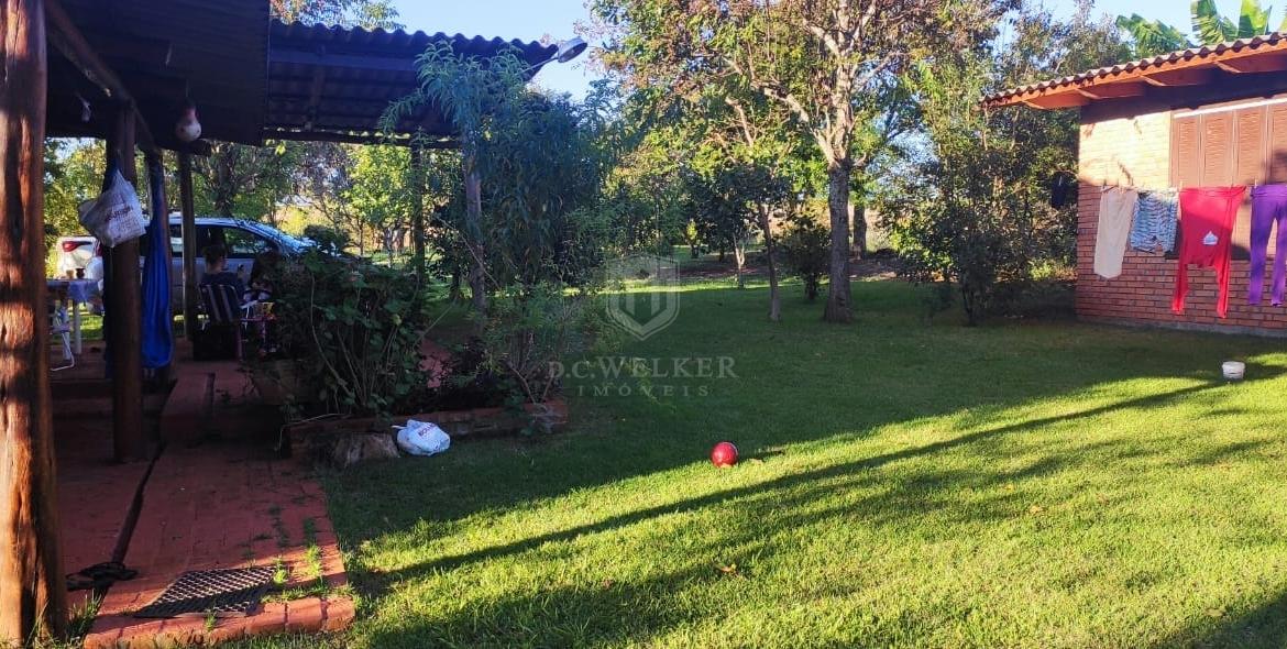 Quiosque com banho, lavanderia, banheiro e churrasqueira com 36 m², com galpão de madeira e cancha de bochas.
